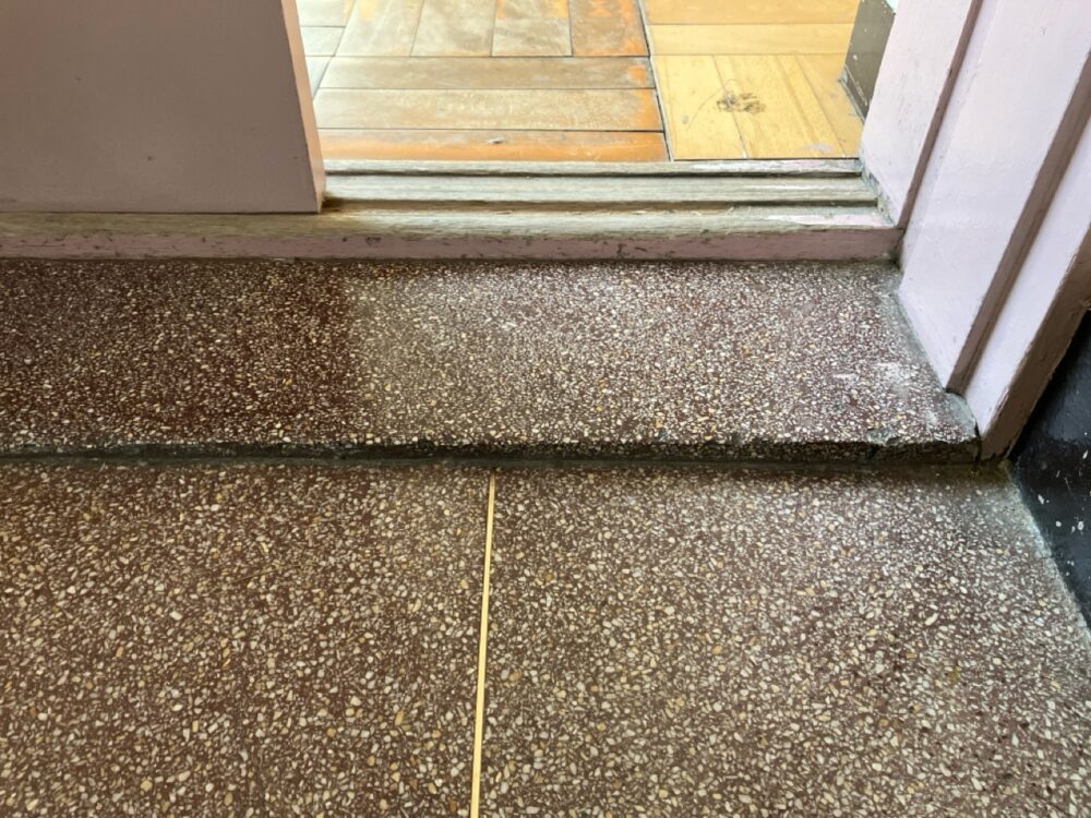 | リフォーム前のお悩み | スロープがない為車椅子の方の入校が困難であった |